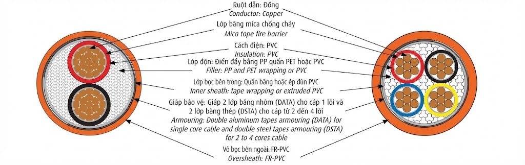 Đánh giá CVV/DATA/FR – 0,6/1 kV & CVV/DSTA/FR – 0,6/1 kV CÁP CHỐNG CHÁY, RUỘT ĐỒNG, BĂNG MICA, CÁCH ĐIỆN PVC, GIÁP BĂNG KIM LOẠI, VỎ FR–PVC