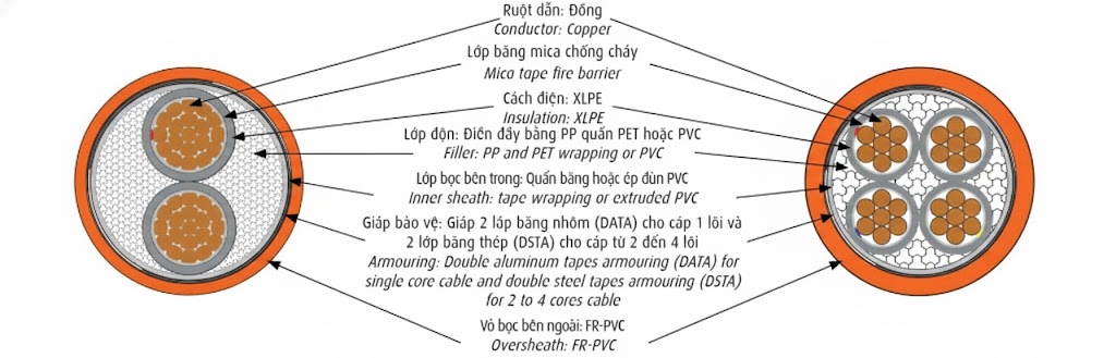 Đánh giá CXV/DATA/FR – 0,6/1 kV & CXV/DSTA/FR – 0,6/1 kV CÁP CHỐNG CHÁY, RUỘT ĐỒNG, BĂNG MICA, CÁCH ĐIỆN XLPE, GIÁP BĂNG KIM LOẠI, VỎ FR–PVC